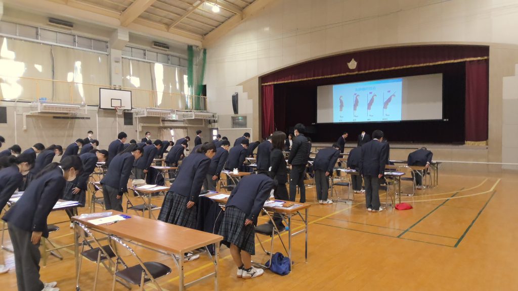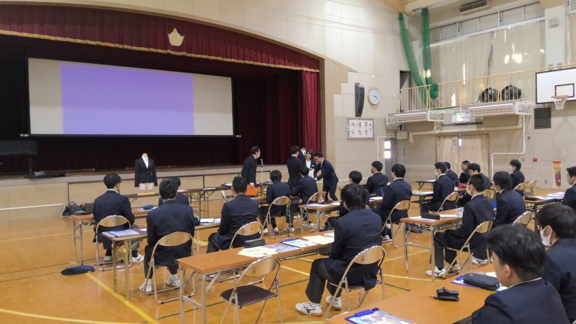 多くの生徒が集中してメモを取りながら清聴していました。卒業後の社会生活に役立ててほしいです。
