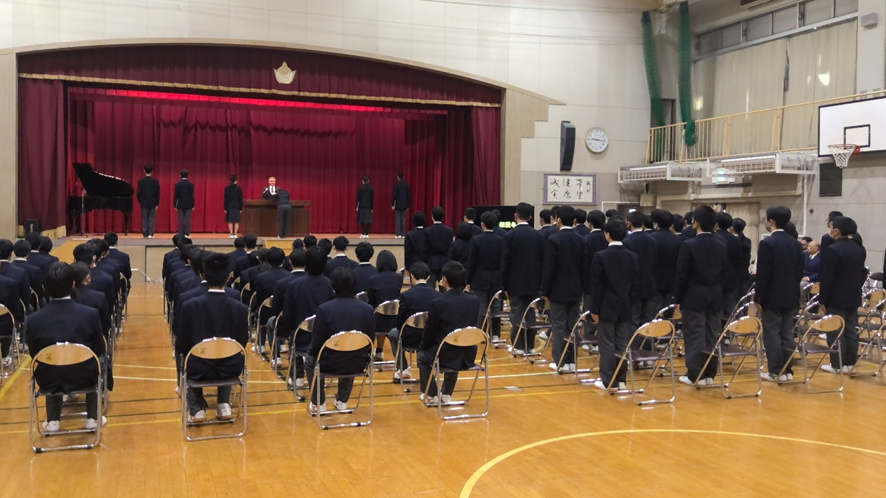 令和8年1月7日(水)始業式を行いました。校舎改修工事も順調に進み、久しぶりに全員そろって式を行うことができました。